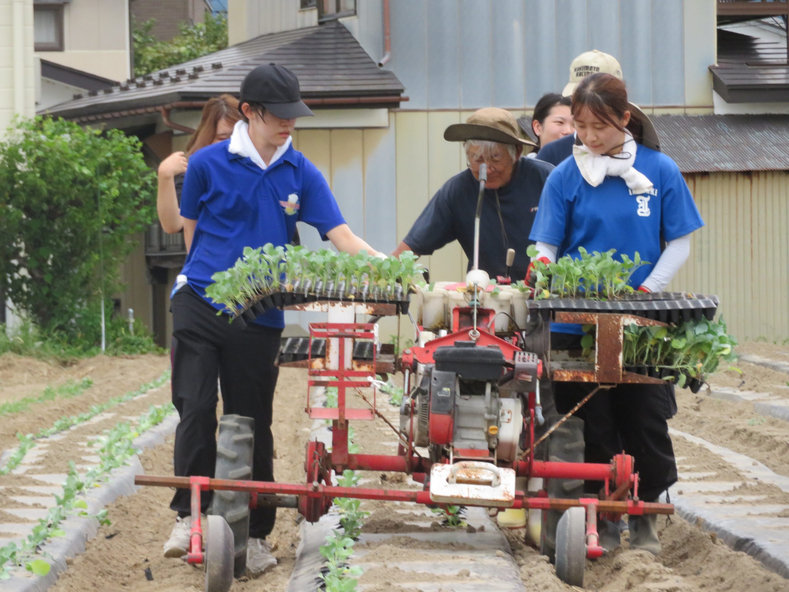 気温が高く、蒸し暑い中での農作業でしたが、市内の農家さんとともに楽しく、真剣に農作業に取り組みました。