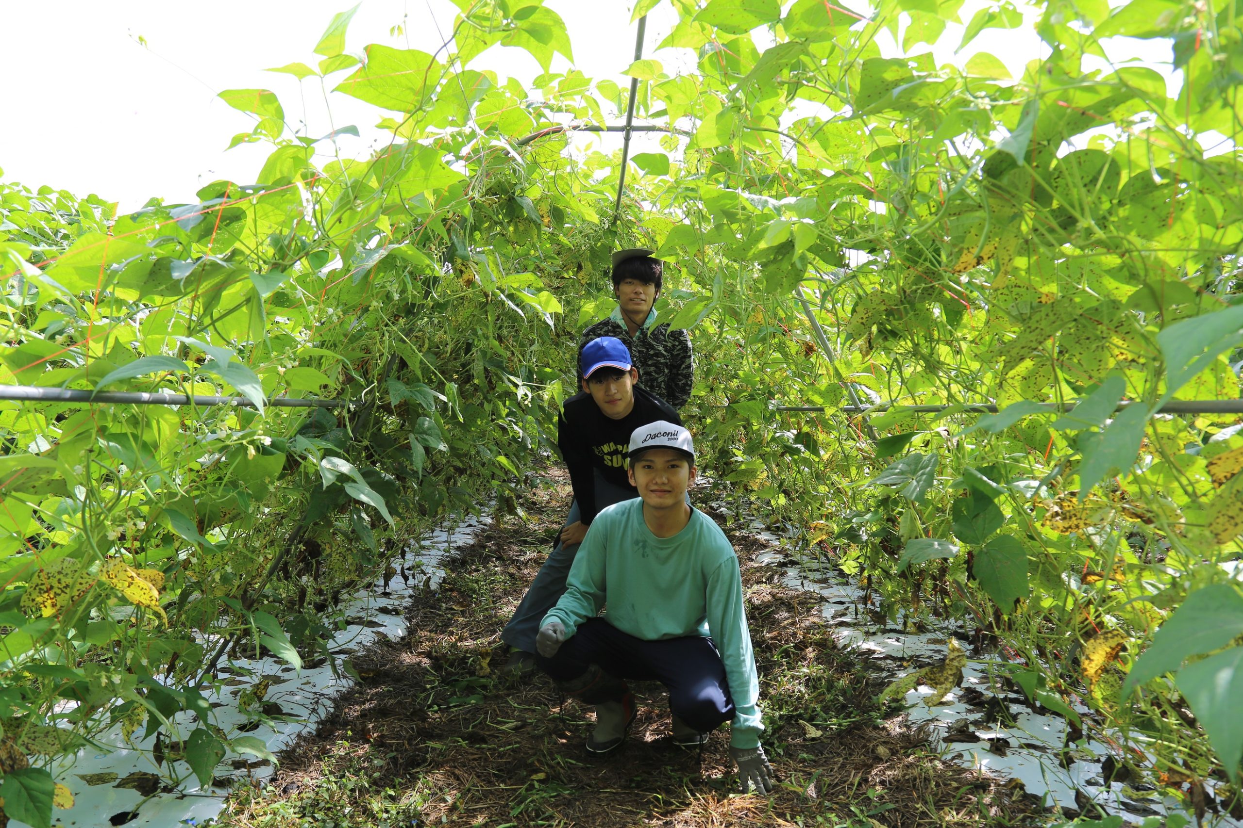3軒の農家さんの家へ分かれて、野菜・果物・農家レストランなど様々な作物の農作業に取組みました。